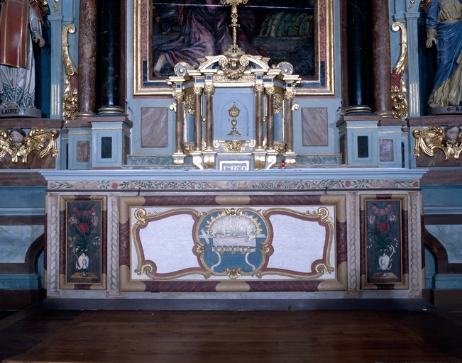 Autel, retable, tabernacle (maître-autel, retable architecturé à niche), église paroissiale Saint-Melaine (Cornillé),