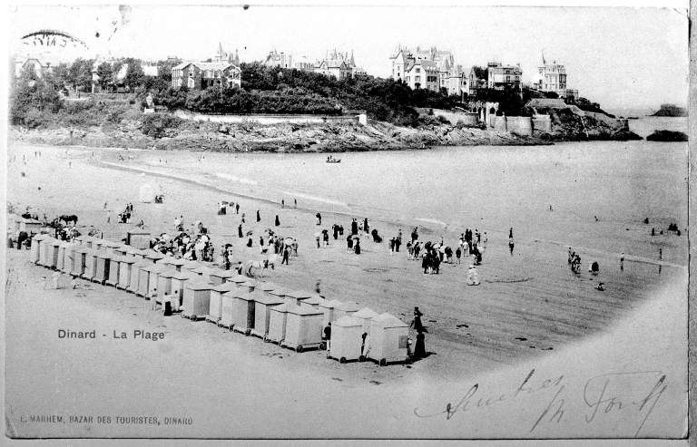 Carte postale ancienne - Dinard - La Plage, E. Marhem, Bazar des touristes, Dinard [avant 1895].Immatriculation