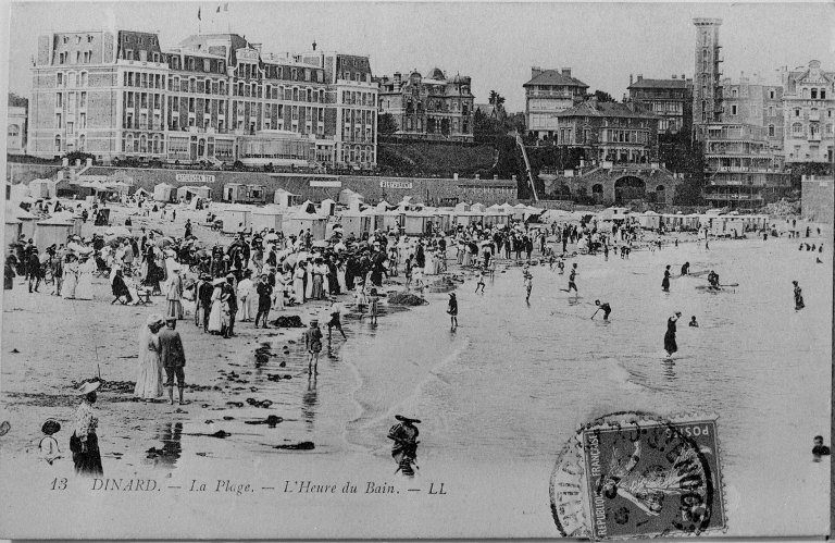 Carte postale ancienne. 13 - Dinard - La Plage - L'Heure du Bain.Immatriculation