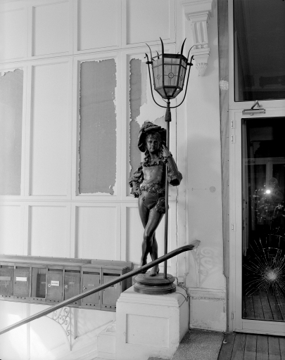 Hall d'entrée sud, valet porte-chandelier en bronze (gauche).Immatriculation