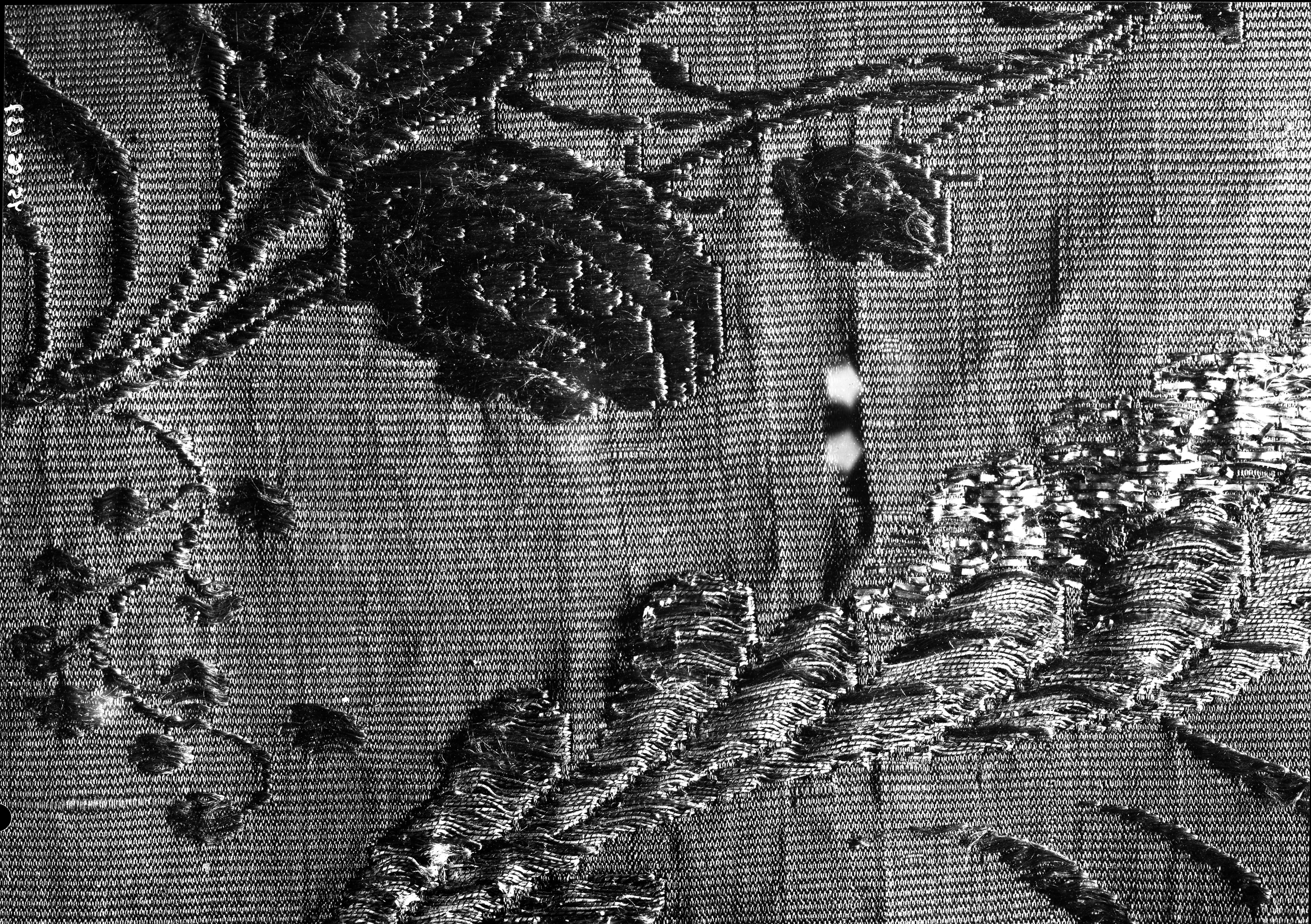 Chasuble, dos : macrophotographie du tissu du fond (état en 1995)Immatriculation