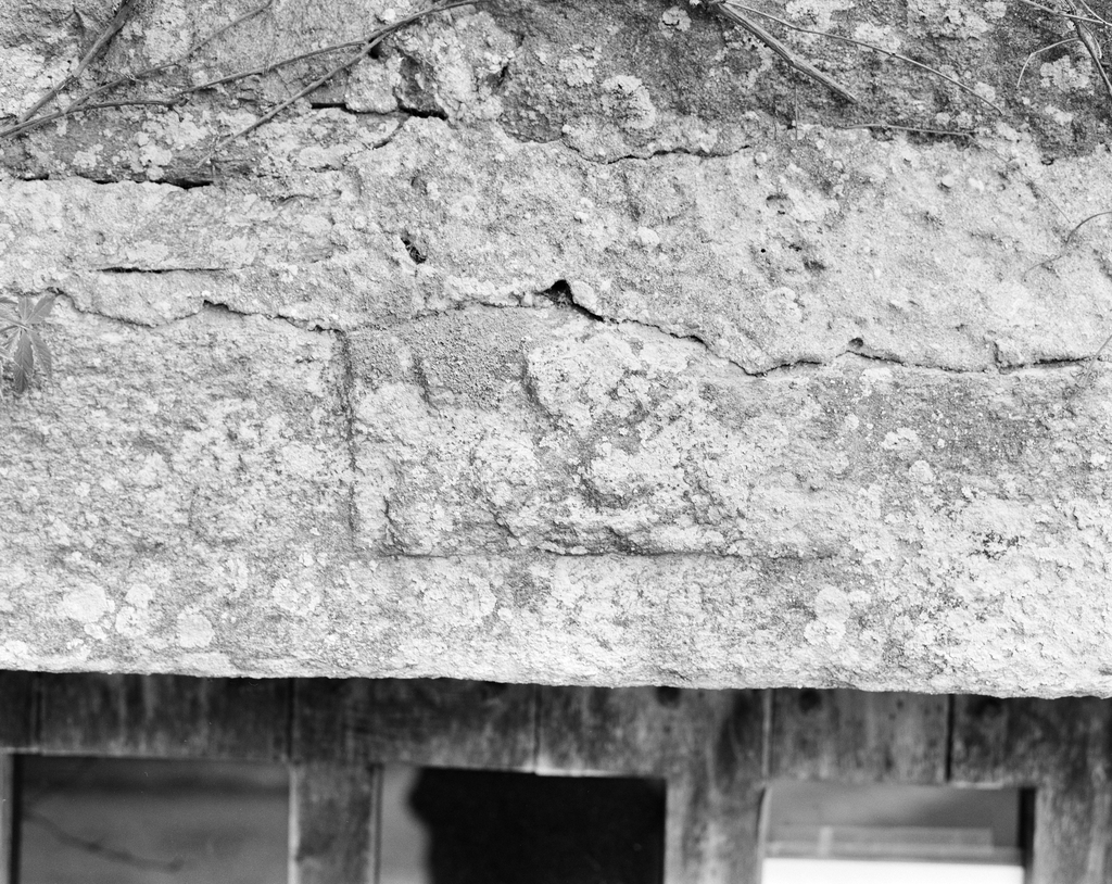 Manoir, élévation ouest, partie nord : blasons..Immatriculation