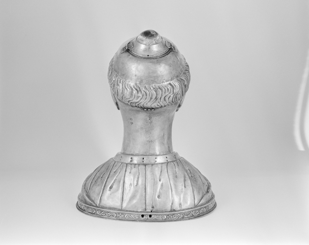 Reliquaire morphologique (chef-reliquaire) : saint Gildas, abbaye de bénédictins Saint-Gildas, de bénédictins de la congrégation de Saint-Maur, de soeurs de la charité de Saint-Louis (Saint-Gildas-de-Rhuys),