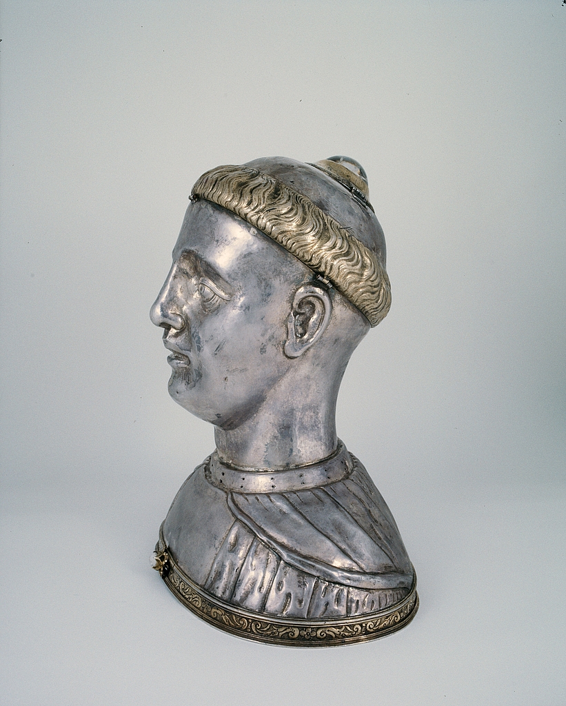 Reliquaire morphologique (chef-reliquaire) : saint Gildas, abbaye de bénédictins Saint-Gildas, de bénédictins de la congrégation de Saint-Maur, de soeurs de la charité de Saint-Louis (Saint-Gildas-de-Rhuys),