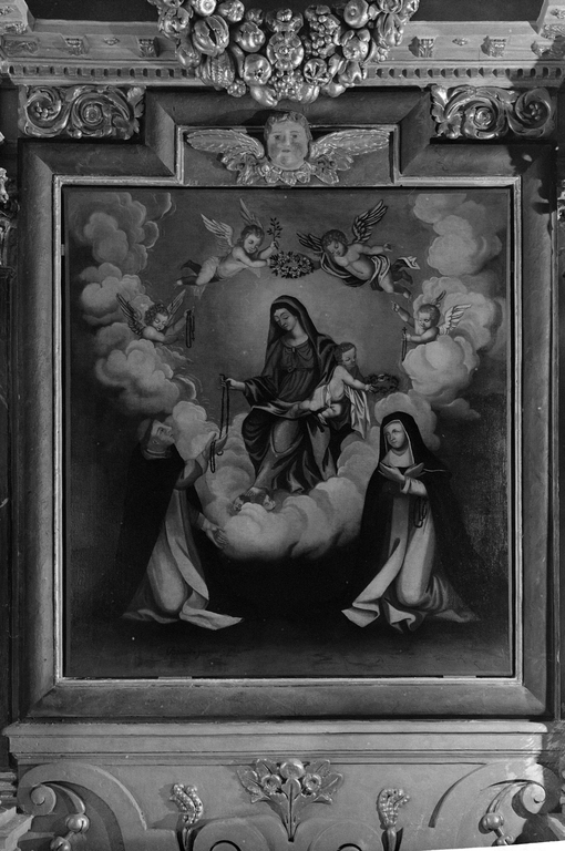 Tableau (tableau d'autel) : Donation du Rosaire, église paroissiale Saint-Melaine (Cornillé),