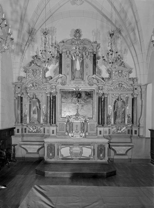 Maître-autel, retable architecturé à niche, vue générale après restauration.Immatriculation
