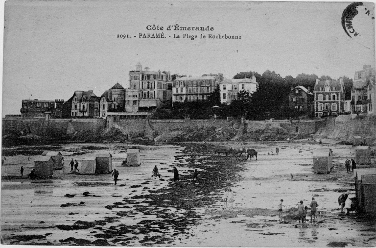 Carte postale ancienne, la plage de Rochebonne. Archives départementales d'Ille-et-Vilaine. 6Fi