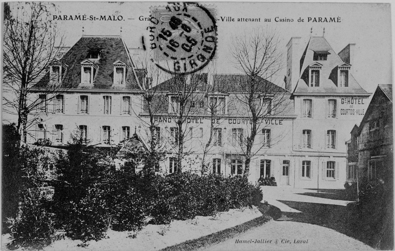 Carte postale début 20e siècle. Grand hôtel de Courtois Ville, attenant au casino de Paramé.Immatriculation