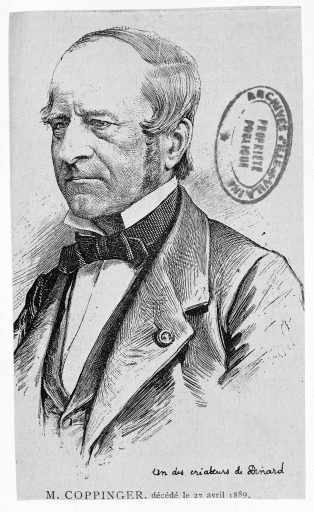 Portrait de M. Coppinger, décédé le 27 avril 1889, un des créateur de Dinard.Immatriculation