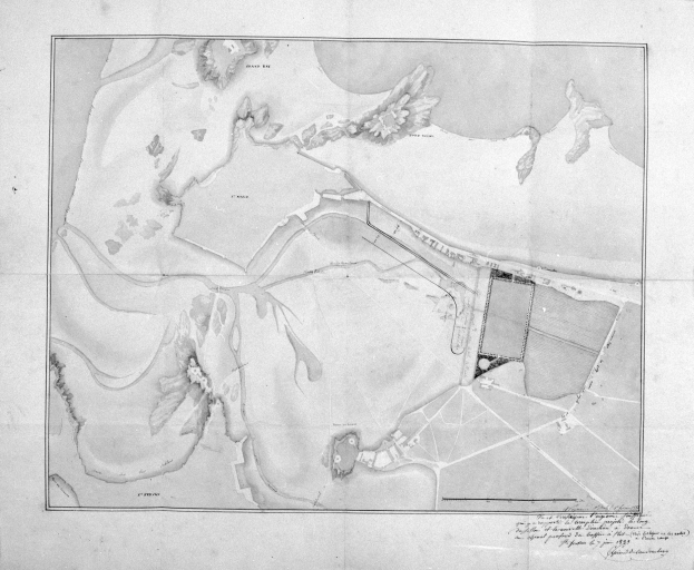 Plan général de Saint-Malo et nouvelle direction à donner au chenal en partant du bassin à flot, 1833.Immatriculation
