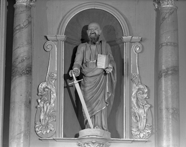 Statues (2) (petite nature) : Saint Pierre, Saint Paul, église paroissiale Saint-Pierre, Saint-Paul (Montreuil-sous-Pérouse),