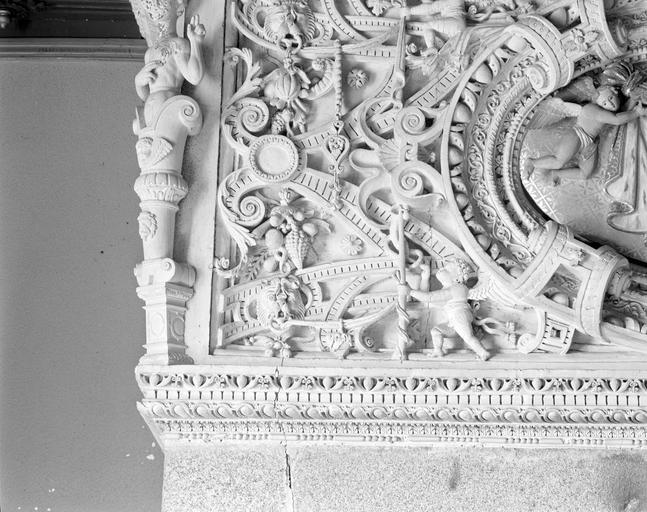 Salle à l'étage : cheminée, détail de la cheminéeImmatriculation