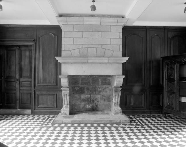 Vue générale de la cheminée, salle n°4, rez-de-chaussée.Immatriculation