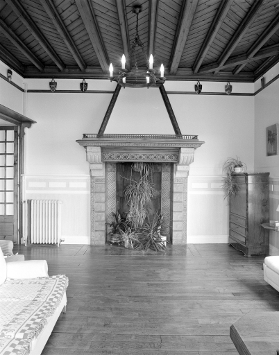 Vue générale de la cheminée dans le grand salon.Immatriculation