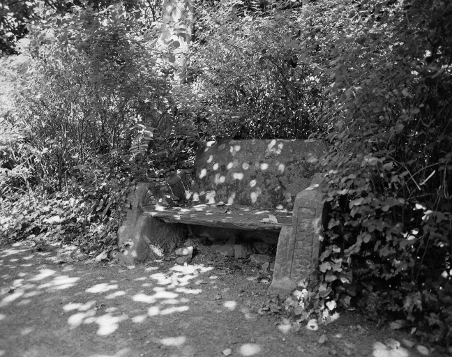 Vue générale du banc dans le jardin japonais.Immatriculation
