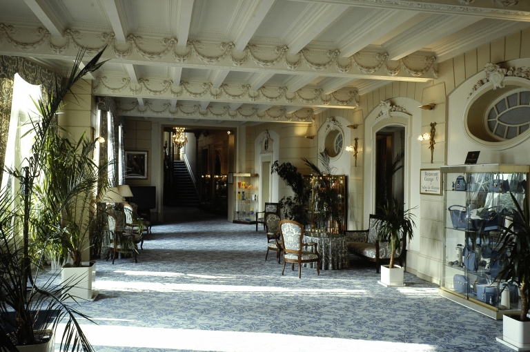 Hall d'entrée, vue générale de la réception vers le restaurant.Immatriculation