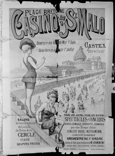 Plage bretonne, Casino de Saint-Malo, affiche grand format, en couleur.Immatriculation