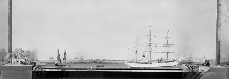 Vue générale de la maquette du Pont roulant, Musée de Saint-Malo.Immatriculation