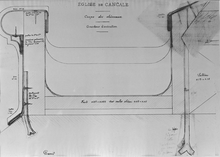 Plan attribué à A. Frangeul pour la construction des chéneaux de l'égliseImmatriculation