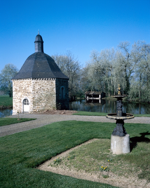 Chapelle du château et fontaine, vue générale.Immatriculation