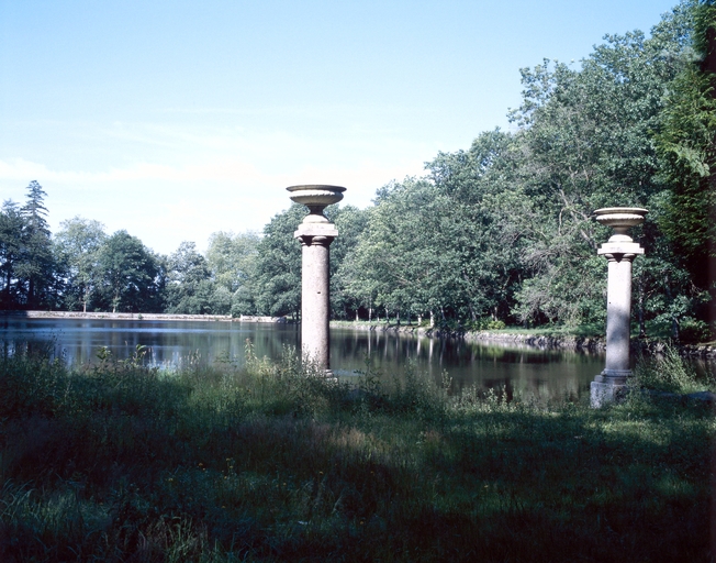 Vue générale de l'étang avec les colonnes.Immatriculation