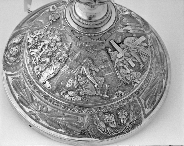 Calice, détail du pied : Christ au calice.Immatriculation
