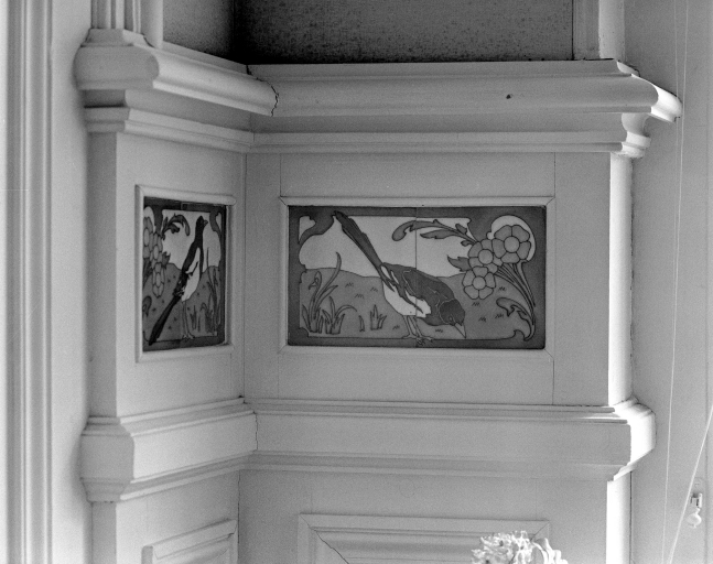 Détail mosaïque sur le mur près de la cheminée.Immatriculation