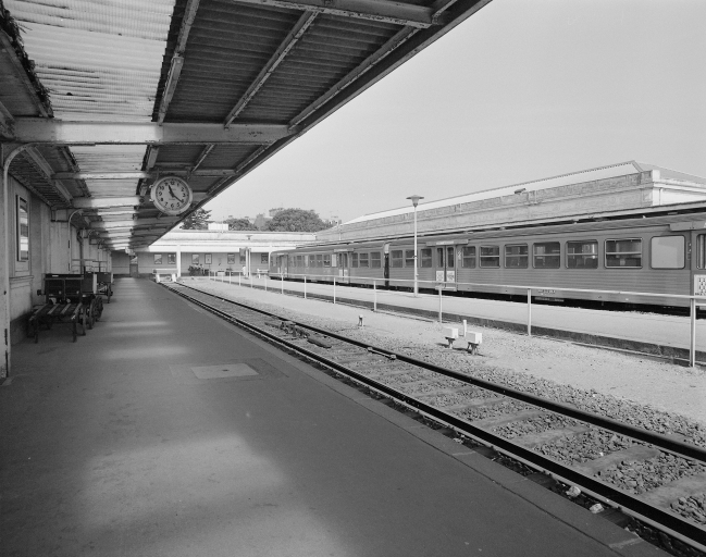Vue générale du quai avec horloge.Immatriculation