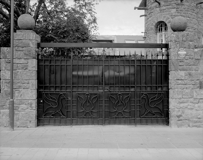 Vue générale du portail d'entrée en ferronnerie.Immatriculation