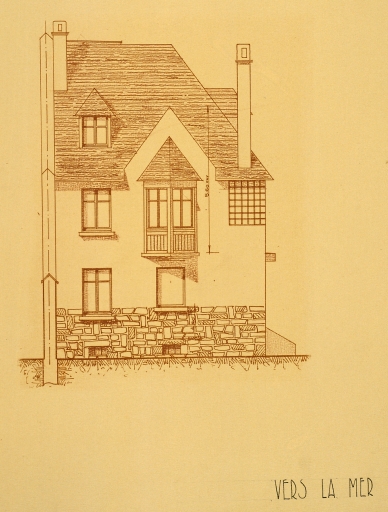 Projet de villa n°9 et 10, élévation de façade vers la mer.Immatriculation