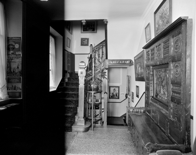 Vestibule à gauche de l'entrée actuelle, vue générale vers l'escalier.Immatriculation