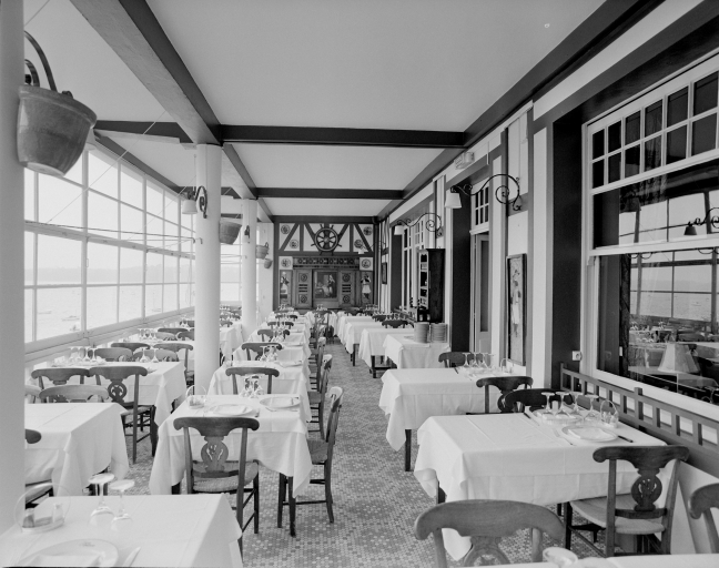Vue générale de la terrasse qui suit le restaurant au 1er niveau.Immatriculation
