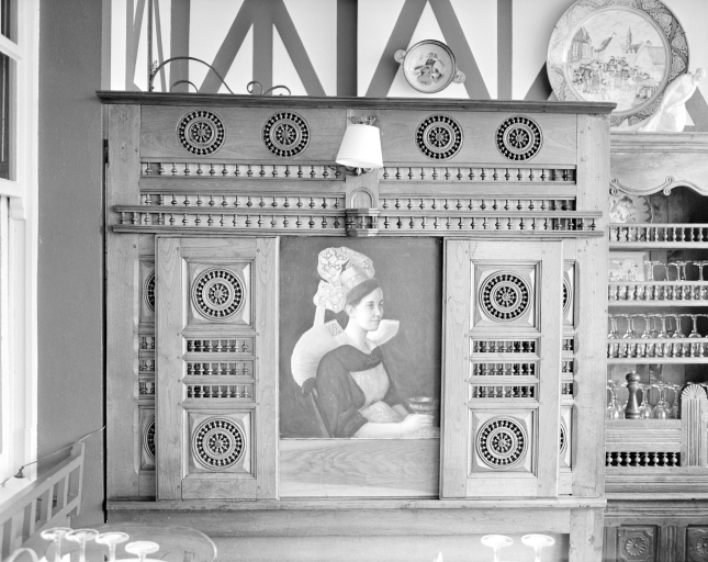 Vue générale du lit clos 2ème terrasse avec tableau signé Oliver, 1960.Immatriculation