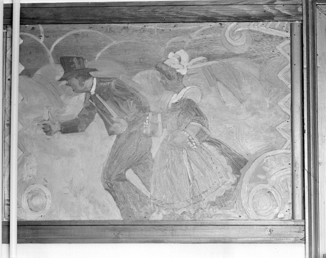 Détail des personnages n°1 de la peinture de la salle à manger.Immatriculation