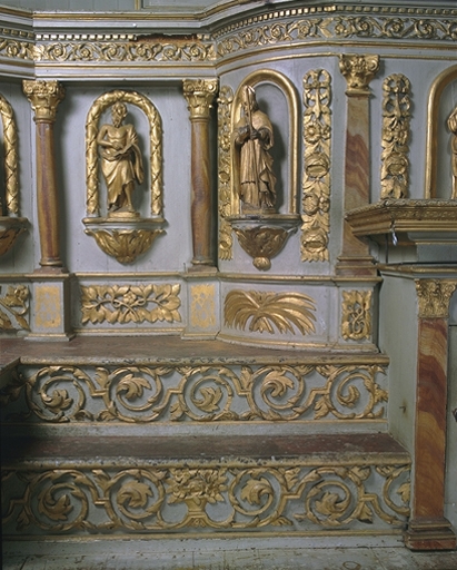 Ensemble du maître-autel (autel, tabernacle, 2 gradins, retable, degré),