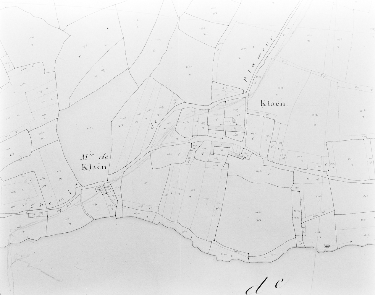 Kerlaën - Emplacement du moulin et de sa retenue d'eau sur le cadastre ancien de 1818, section C.Immatriculation