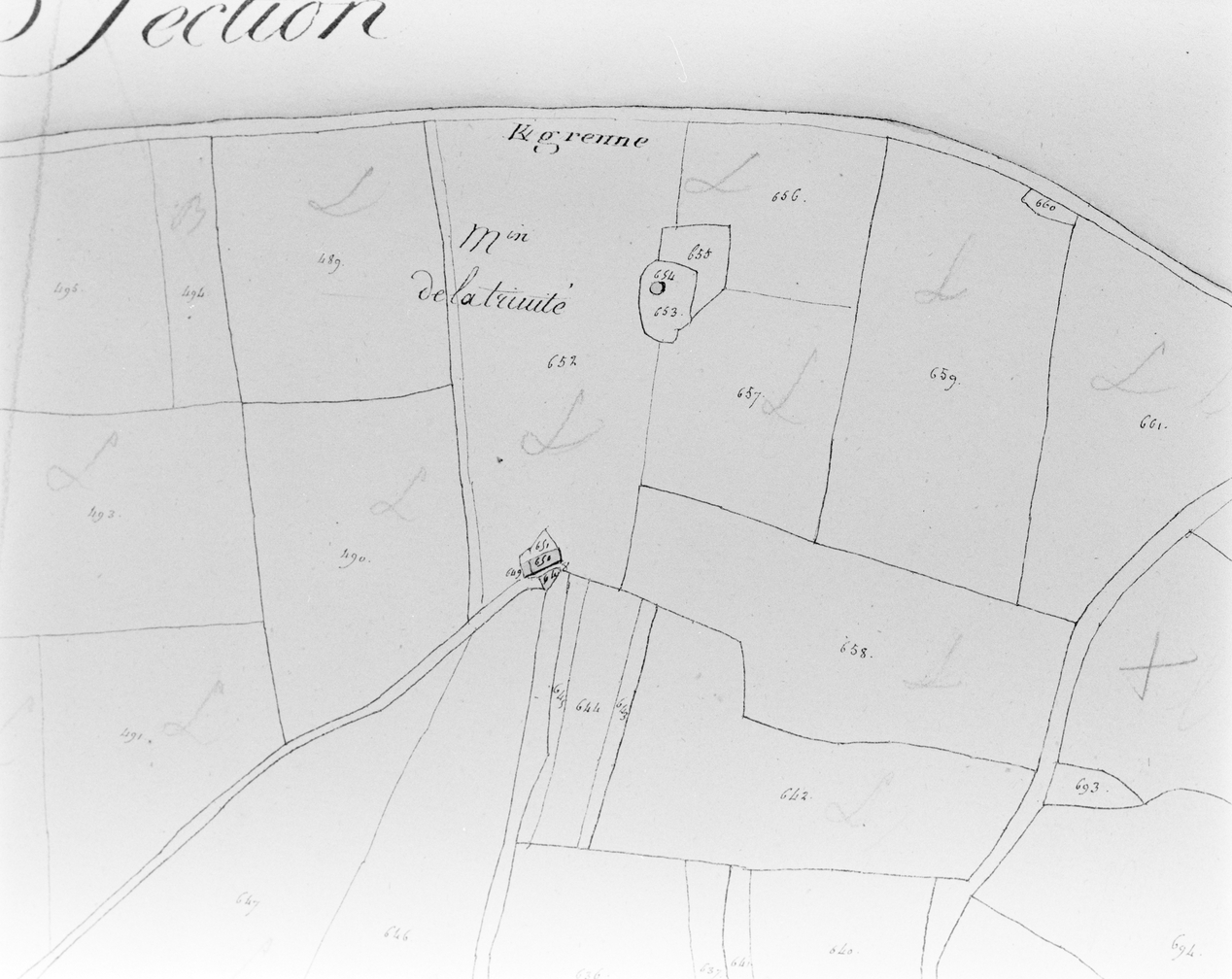 Moulin de la Trinité - Emplacement de maisons et du moulin sur le cadastre ancien de 1818, section C.Immatriculation