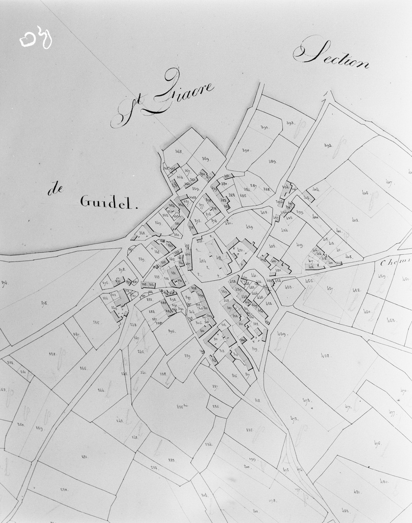 Le bourg, cadastre ancien 1818, section 0Immatriculation