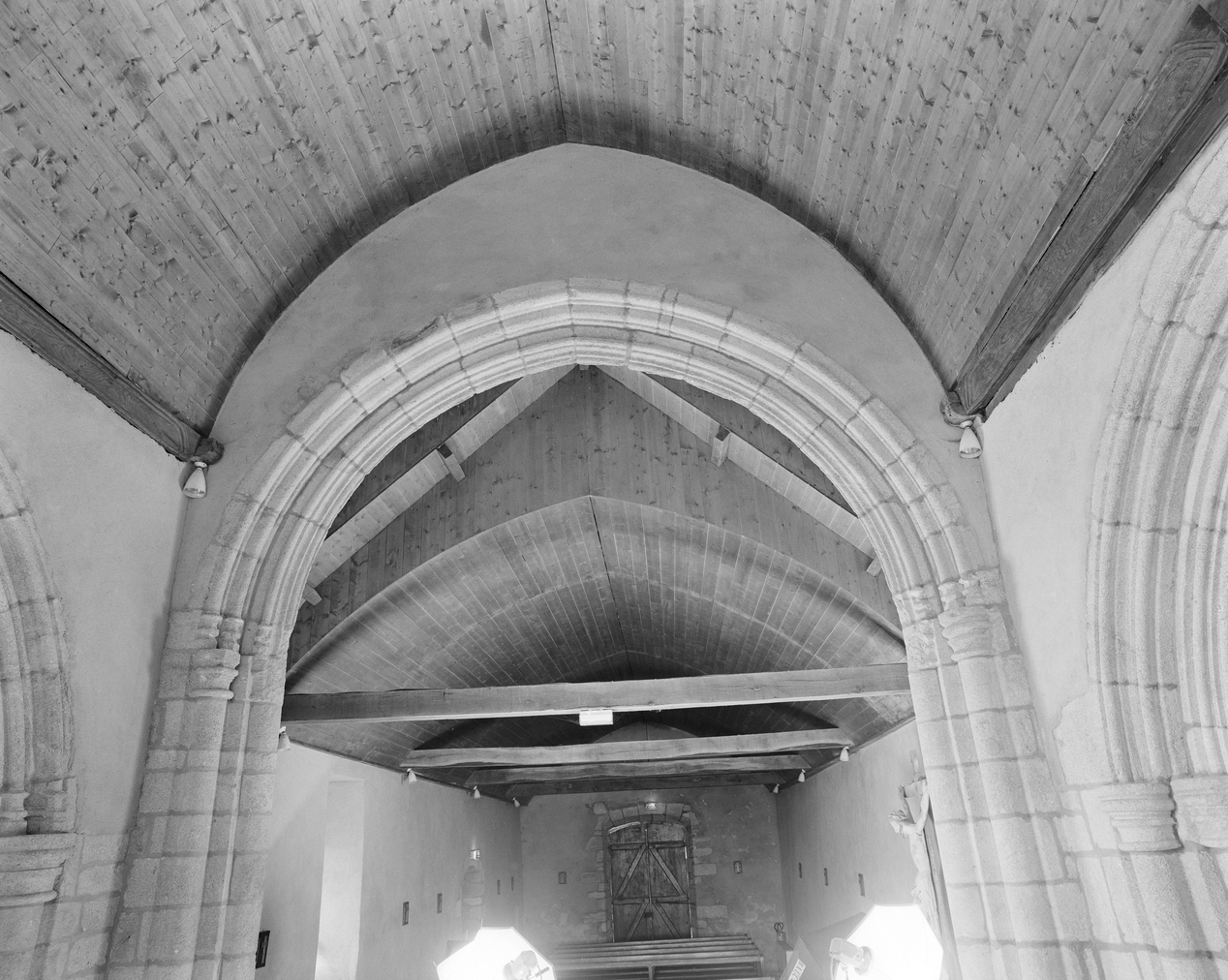 Vue de l'arc diaphragme séparant la nef du transept.Immatriculation
