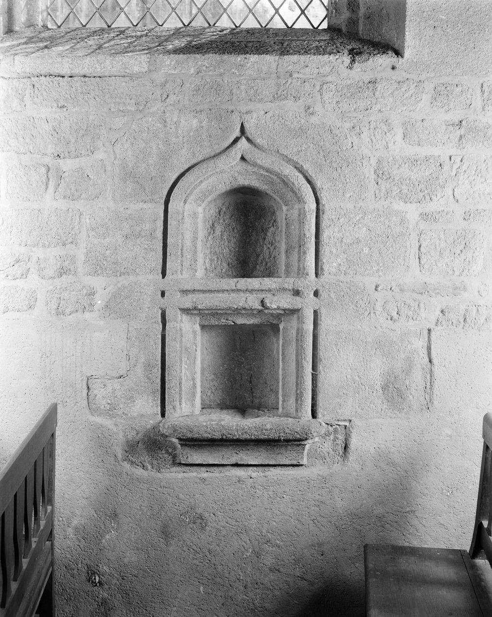 Mur sud, détail de la niche crédence.Immatriculation