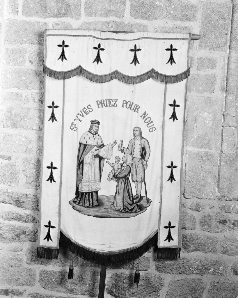 Bannière de procession : Vierge à l'enfant, saint Yves, chapelle Notre-Dame-de-Vérité (Caudan),