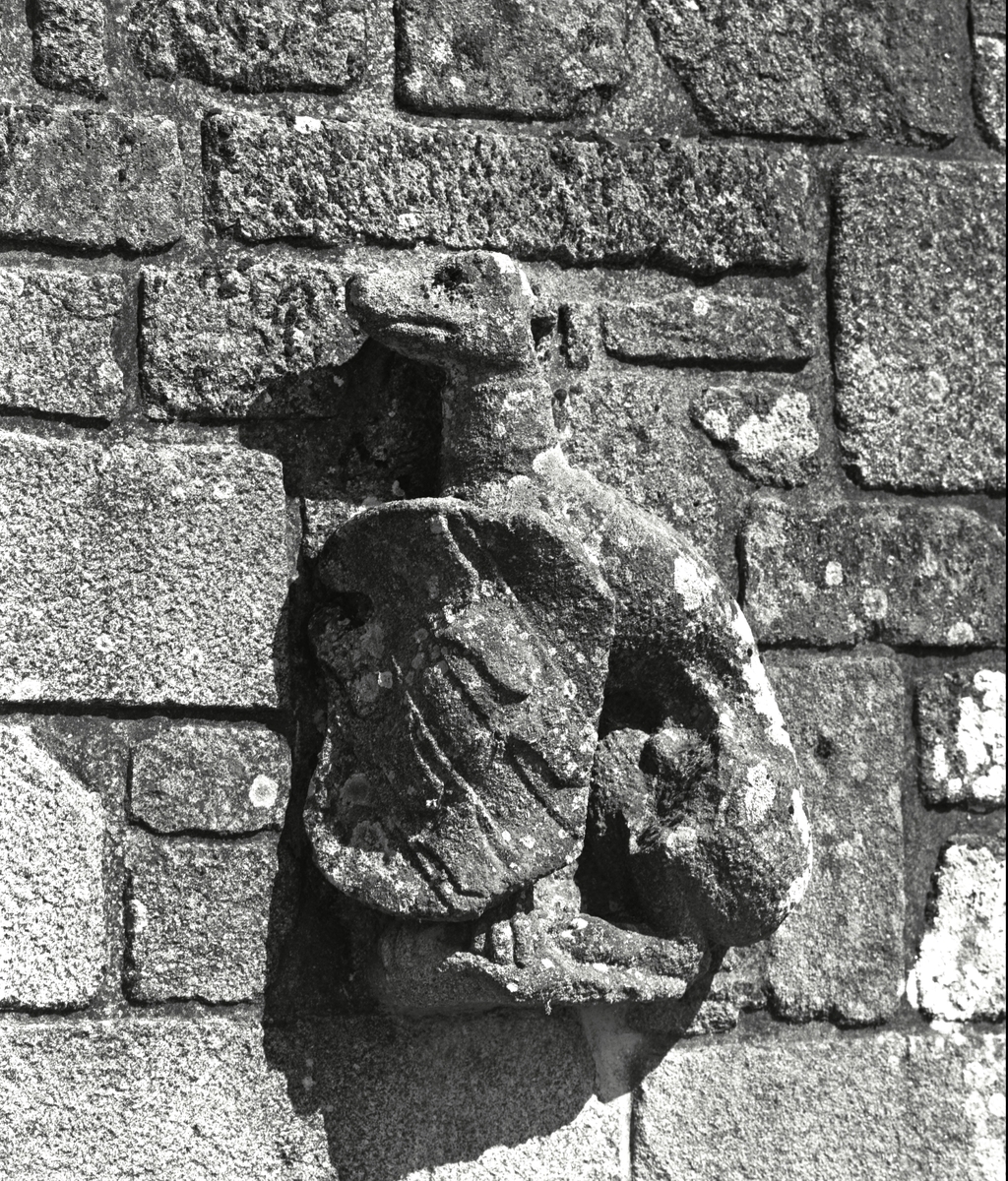 Elévation ouest : détail du lévrier support du blason de Henri du Vergier.Immatriculation