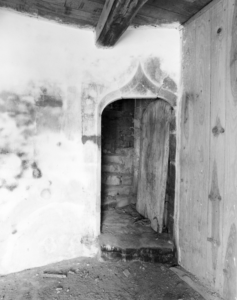Détail de la porte ouvrant sur l'escalier.Immatriculation