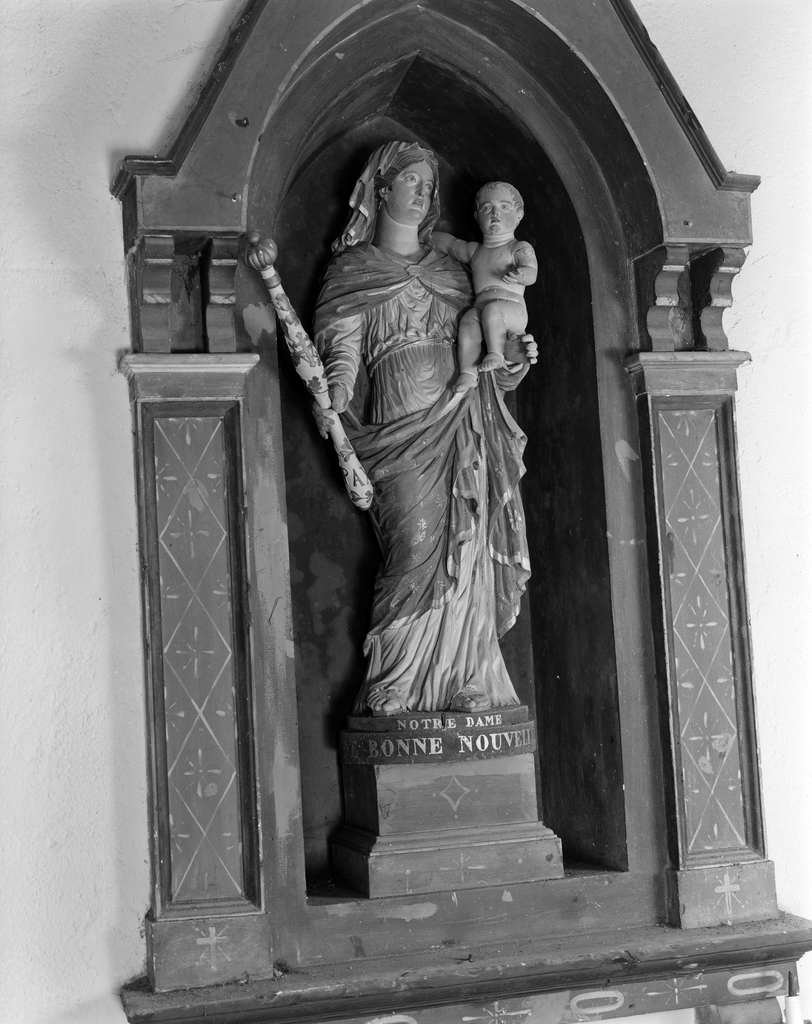 Statue (petite nature) : Vierge à l'enfant dite Notre-Dame-de-Bonne-Nouvelle (n° 2), chapelle Notre-Dame-de-Bonne-Nouvelle (Cléguer),