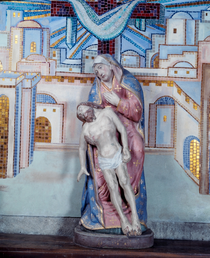 Groupe sculpté : Vierge de pitié (peinture monumentale), église paroissiale Saint-Gérand (Cléguer),