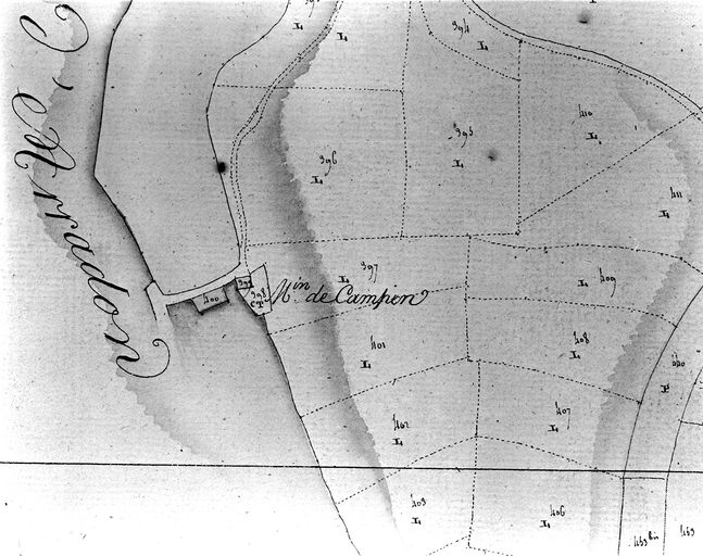 Plan cadastral 1807-1809. Section F2 : moulin à marée de Campen. AM Vannes 21Fi.Immatriculation