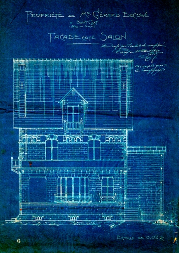 Villa de M. Bécuwe à Saint-Cast. Façade côté salon, Audier, 1910 (A. P.)Immatriculation