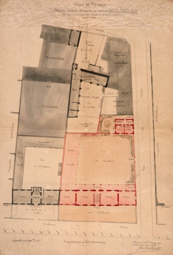 Plan des écoles primaires de garçons et de filles. Indications des propriétés au nord de l'ancien couvent des Carmes, 1892, par Martenot,Immatriculation