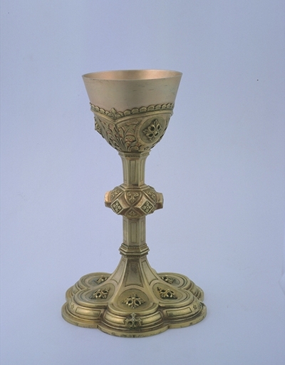 Chapelle : calice, 2 burettes, plateau à burettes, sonnette d'autel,
