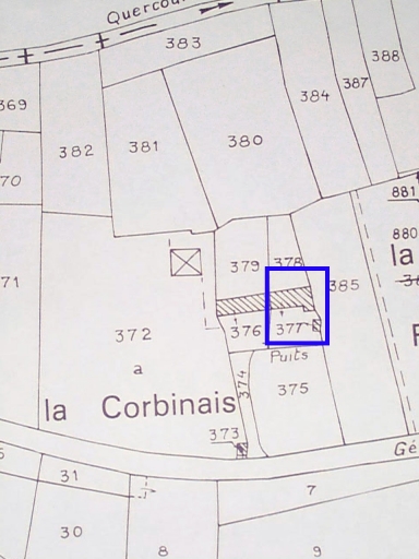 Plan de situation sur le cadastre de 1982 : parcelles 377 et 378Immatriculation
